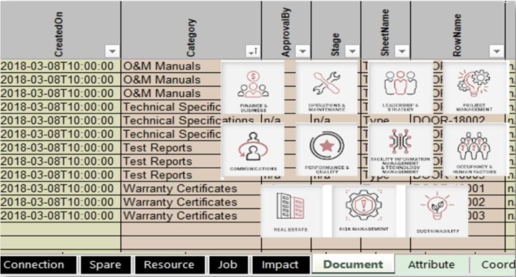Construction Operation Building Information Exchange (COBie) can implement BIM models with information taken from the OM (operation manual) and technical specifications. Extract the information from the model based on FM (Facility Management) requirements and validate the data with external sources (Eg. Ecodmous, Solibri).